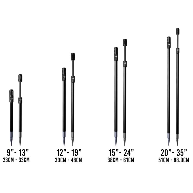 Супер здрави, но леки, те се обработват и сглобяват в собствената фабрика на ESP в Обединеното кралство. Изработени с помощта на изключително дълъг машинно обработен връх от неръждаема стомана и комбинирани с твърд анодиран алуминий с диаметър 12 мм, те ще проникнат дори в най-твърдата почва. Удължаващата се вътрешна част се състои от солидна 8 мм въглеродна пръчка, която намалява теглото, като същевременно осигурява изключителна здравина. Ергономичният „захващащ“ лост осигурява положително заключване само с малка част от завъртането.