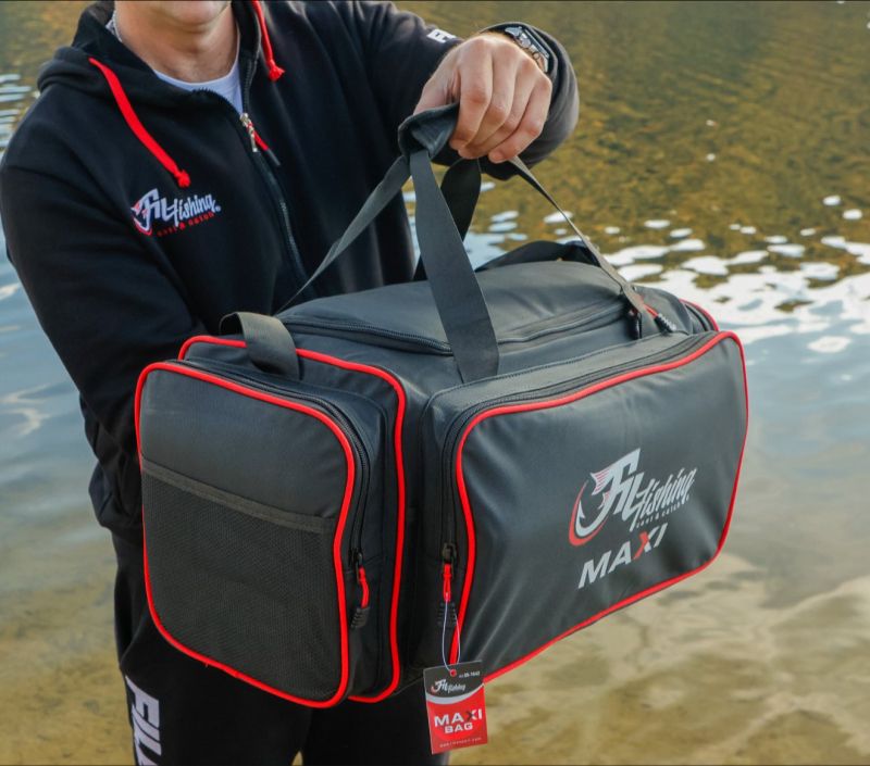 Filex MAXI BAG е универсална и отлична чанта за всички рибари. Чантите са изработени от материал "900D PU", който е водоустойчив и лесен за почистване след употреба! Отличен избор за безопасно съхранение на аксесоари край водата. Разполагат с едно голямо отделение, два странични джоба и преден джоб за аксесоари. Оборудвани са с регулируема презрамка и дръжки за носене. Размери: 53 x 30 x 26 см.